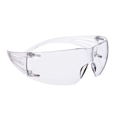 3M™ SecureFit™ Güvenlik gözlüğü kenarsız bir lens ve sabit uzunluklu saptan oluşur. Ek koruma için bir entegre yan koruma dahil edilmiştir.