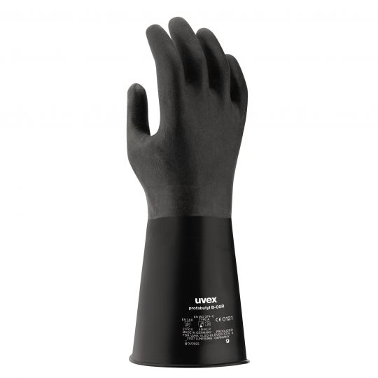 | %100 bütil kauçuktan imal edilmiş uvex profabutyl kimyasallara karşı koruyucu eldivenler temel olarak esterler veya ketonlar gibi polar bileşiklerle çalışmaya uygundur. |